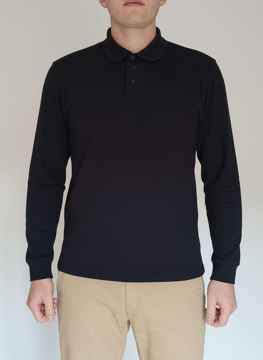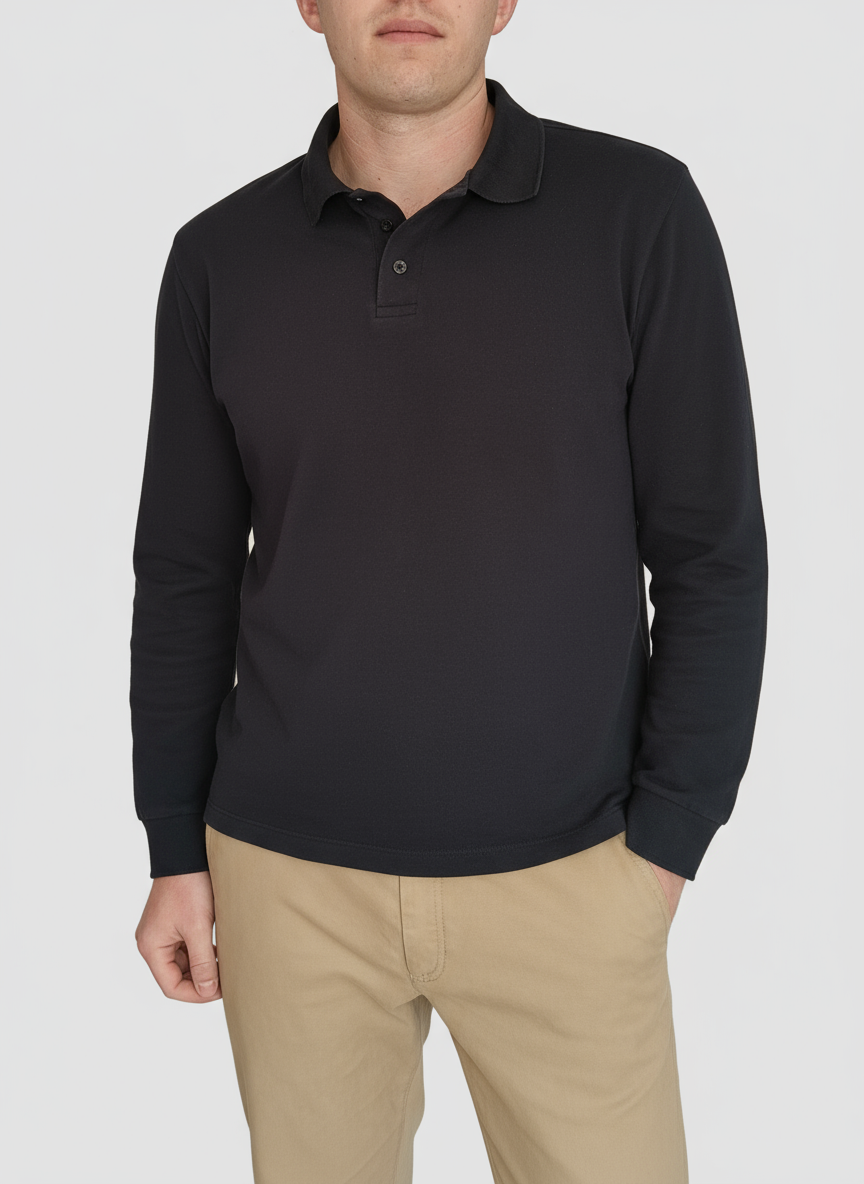 The Long Sleeve Polo Shirt is the same same fit, but with longer sleeves.
