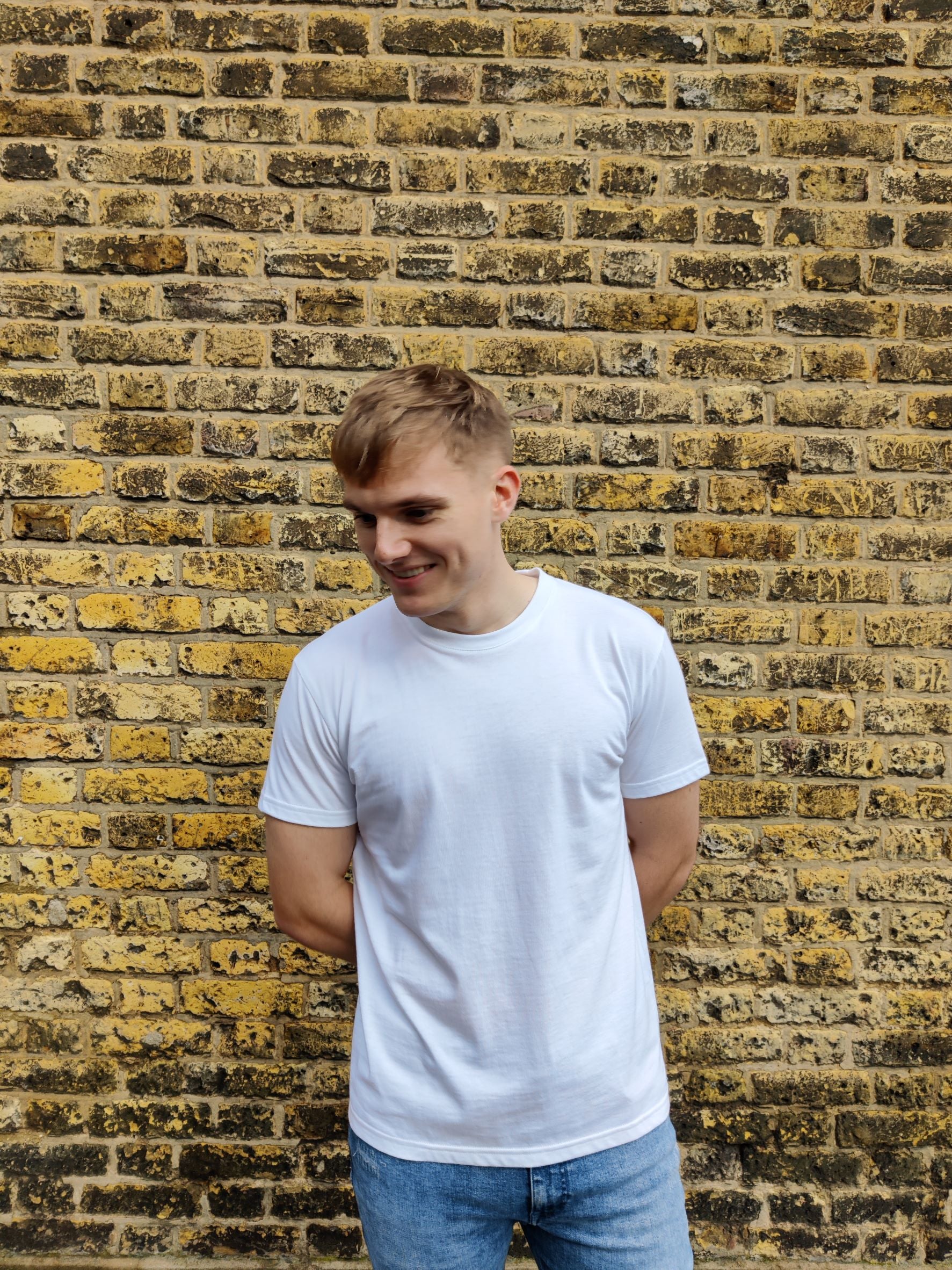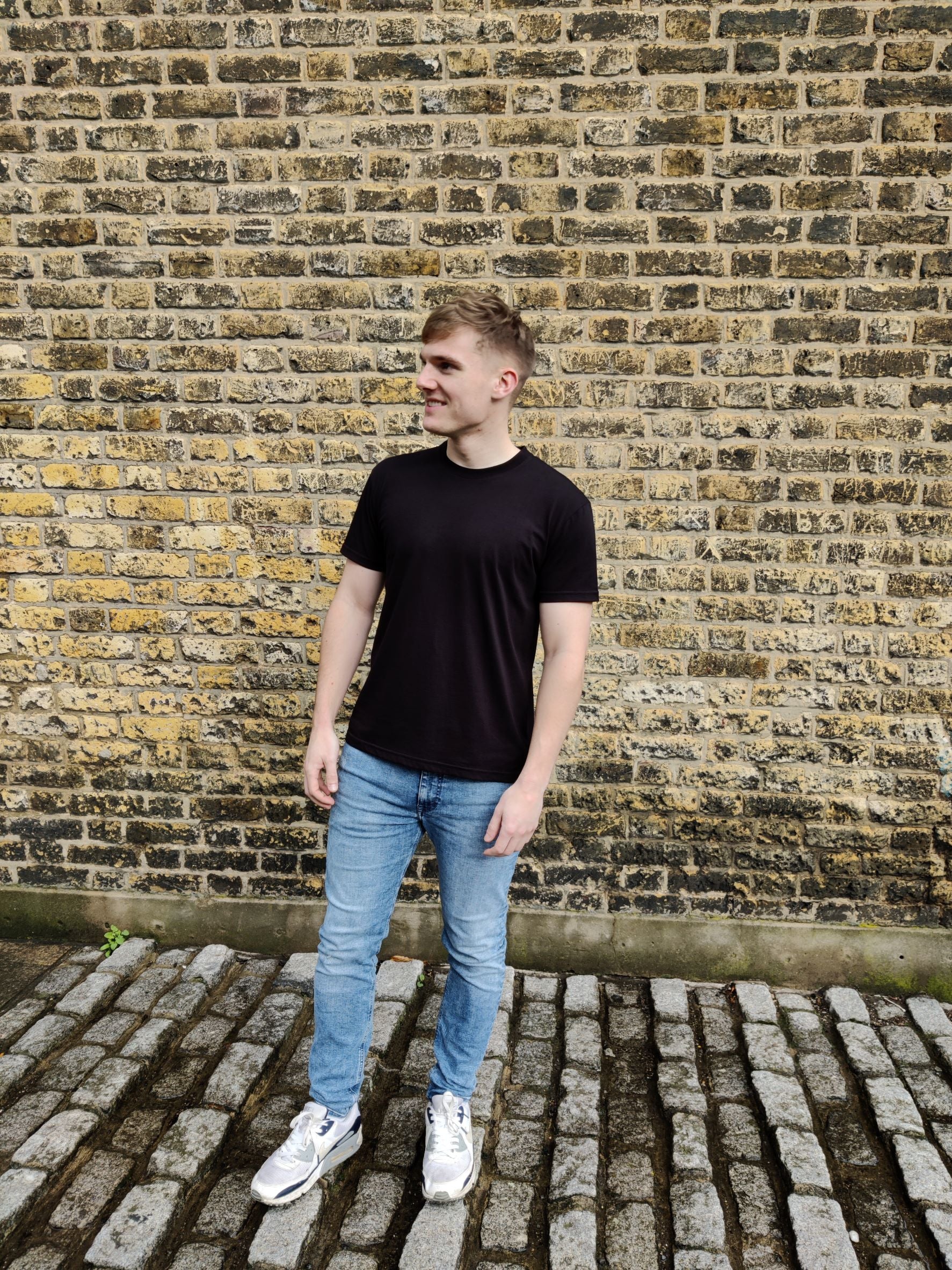 The Classic T-shirt is slightly slimmer in fit. If you like that look, then go for your usual size. If you prefer a looser fit, go up one size - the length will still be shorter than the average brand.